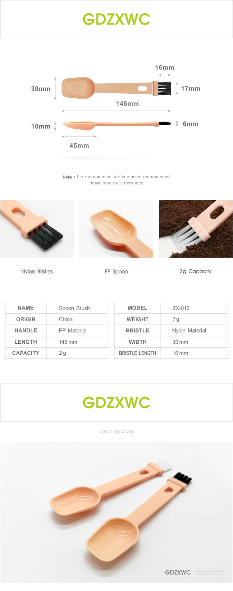 型号:ZX-012 藕粉柄白毛/藕粉柄黑毛,这是一款咖啡勺子,PP手柄+尼龙刷毛,适用于小家电清洁、家居清洁 ......
